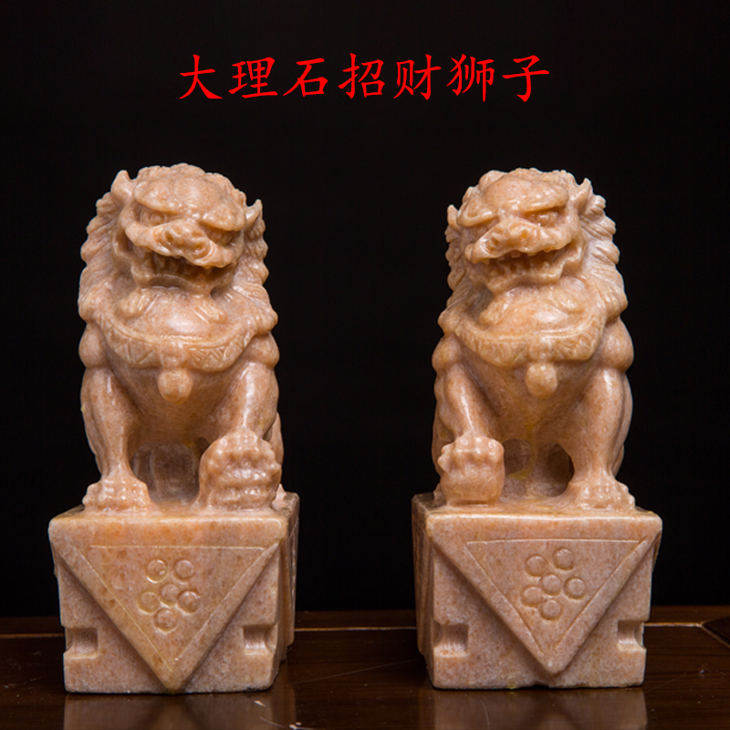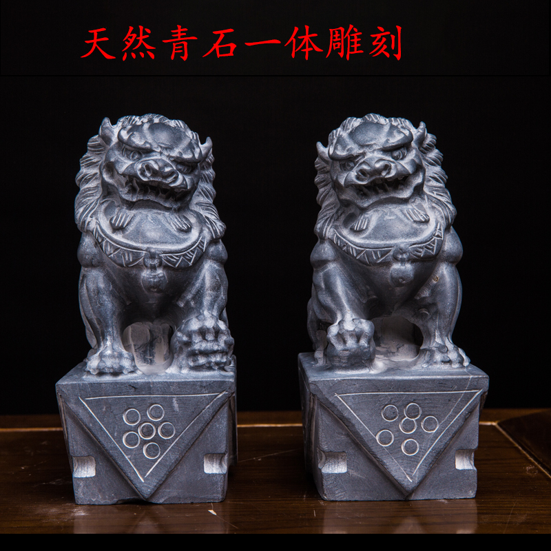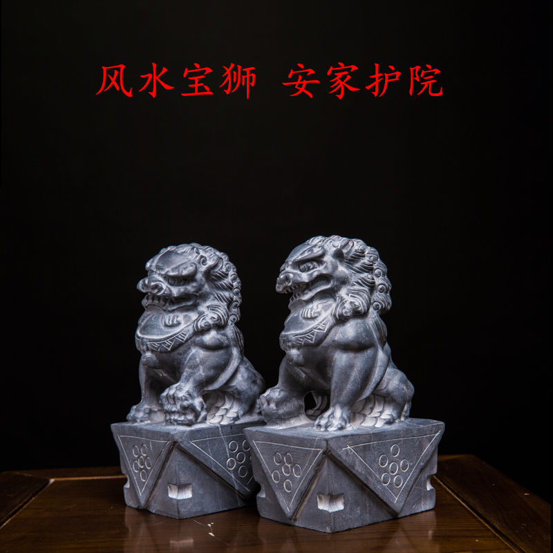 Stone Sculpture Lions Pair of view door Home Small number Chinese Courtyard Natural Raw Stone Town House Pendulum Pieces Green Stone Carving Craftsmanship