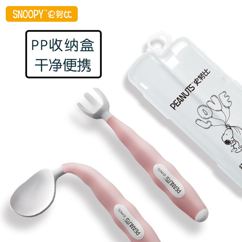 History Nu Biobao Eating Training Spoon Elbow Fork Spoon Suit Baby Cob Spoon Bending Children Cutlery