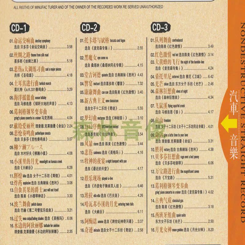 Genuine car-mounted CD-ROM Turkish March Destiny 1812 Prelude Classical World famous songs Light Music CD