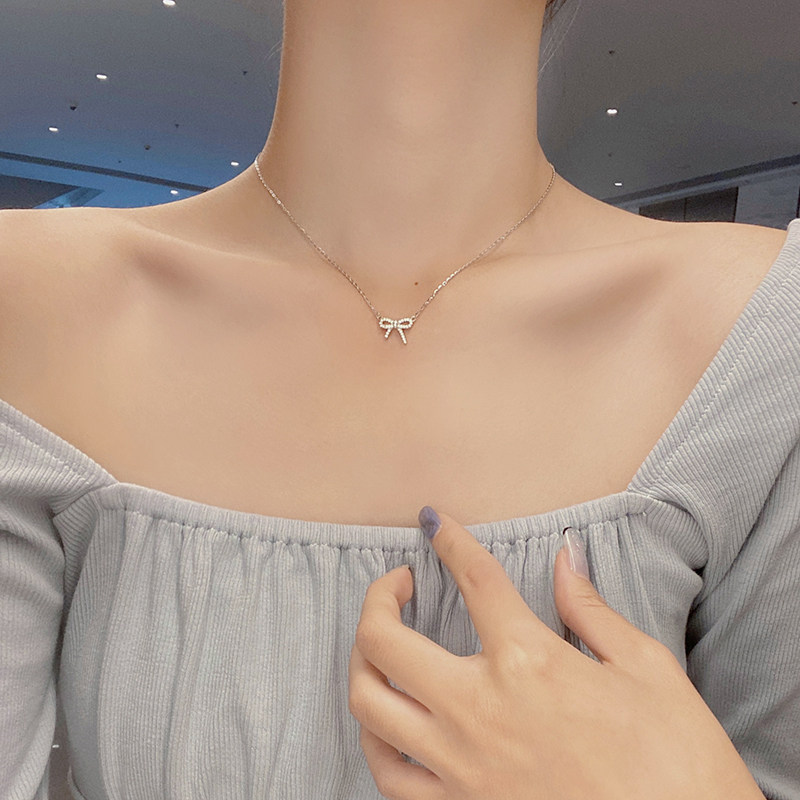 Butterfly Knot Pure Silver Necklace Woman Light Extravaganza Design Superior Feel Lock Bone Chain 2021 New Birthday Gift