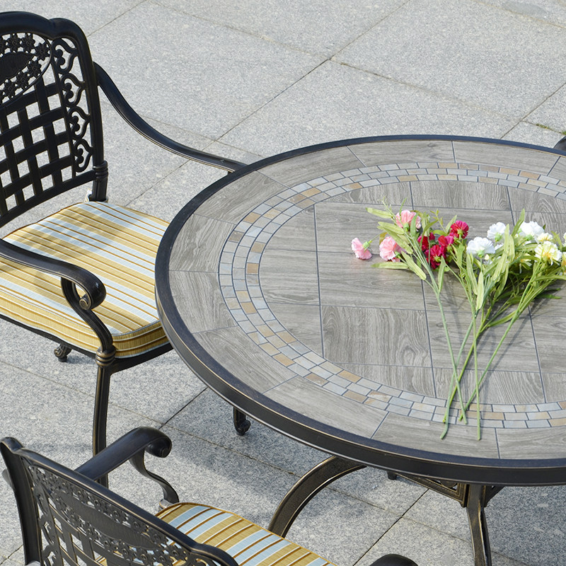 Outdoor cast aluminum table and chair three-five-piece outdoor leisure outdoor terrace garden courtyard waterproof barbecue table and chair combination