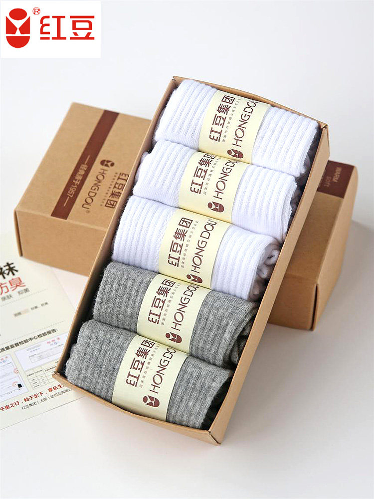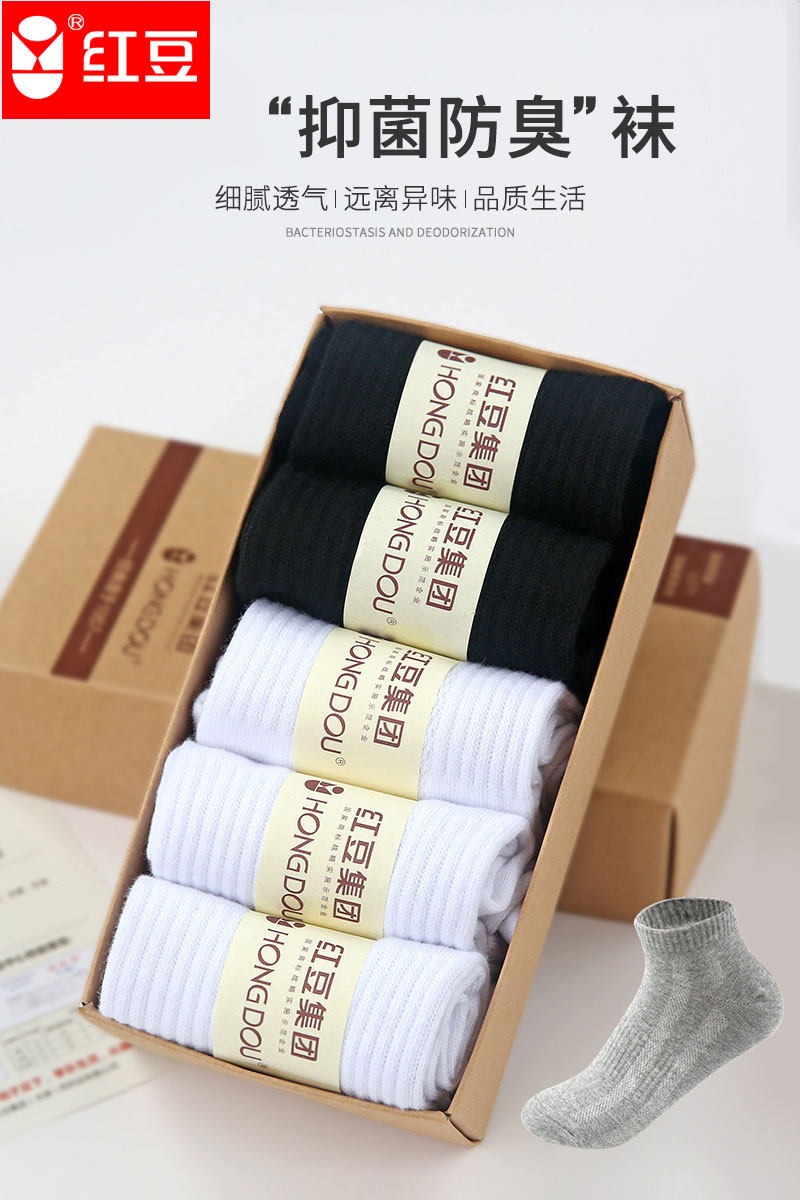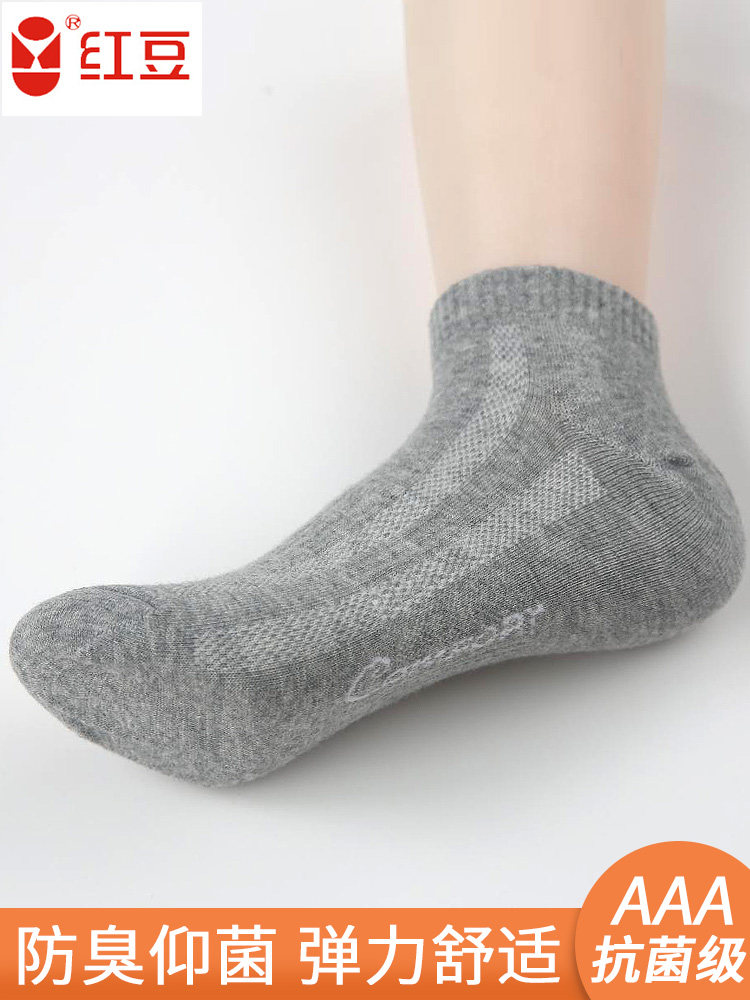 Red bean men's socks antibacterial and deodorant socks sports sweat-absorbing breathable cotton socks summer thin low-top shallow boat socks