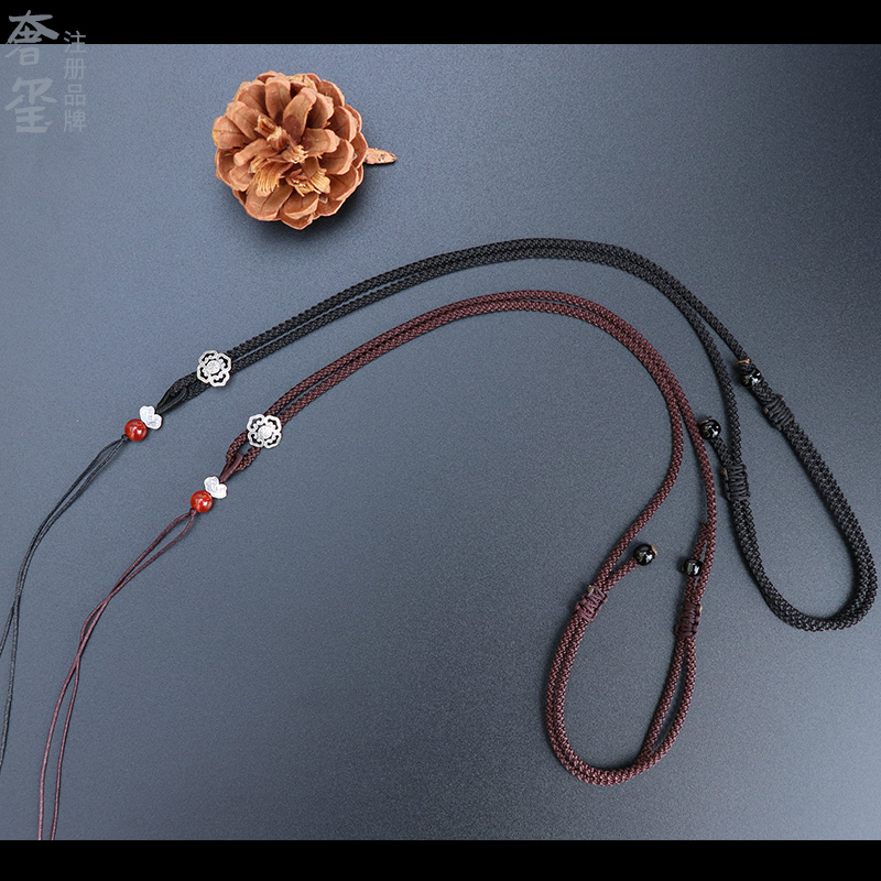 Jade lanyard men's and women's high-end hand-woven bold and strong high-end necklace rope simple jade pendant rope