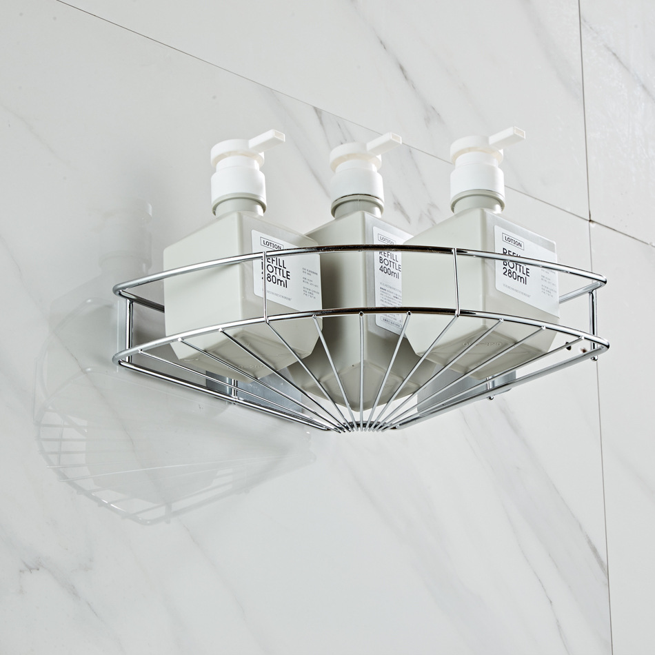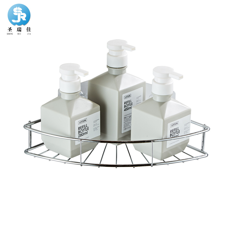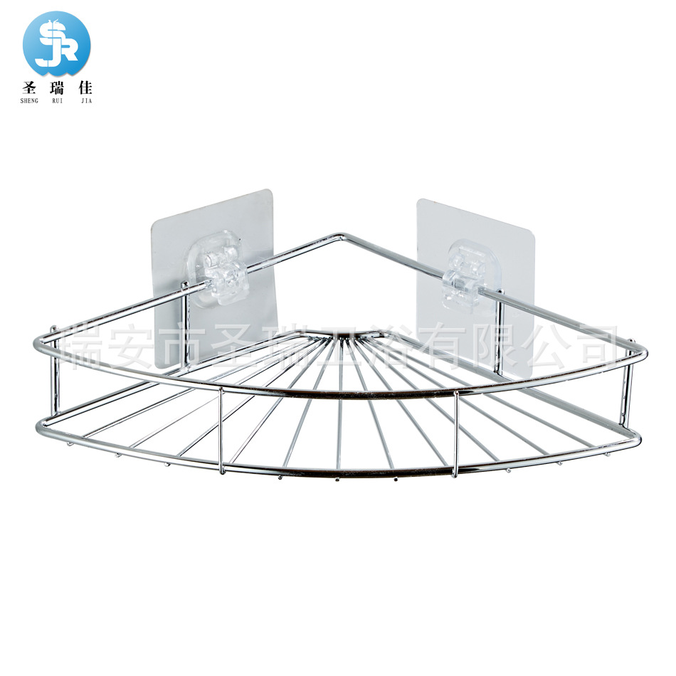 Shengruijia No Punching Bathroom Triangle Shelf Stainless Steel Mesh Basket Nail-Free Corner Shelf Bathroom Hardware Cross-border