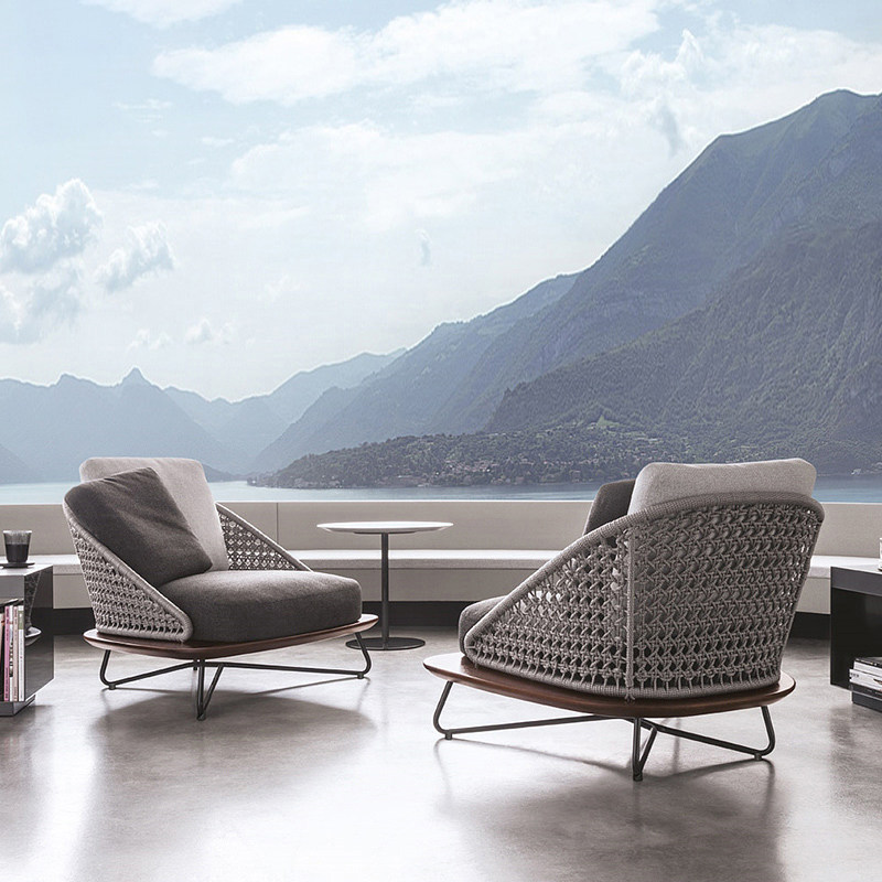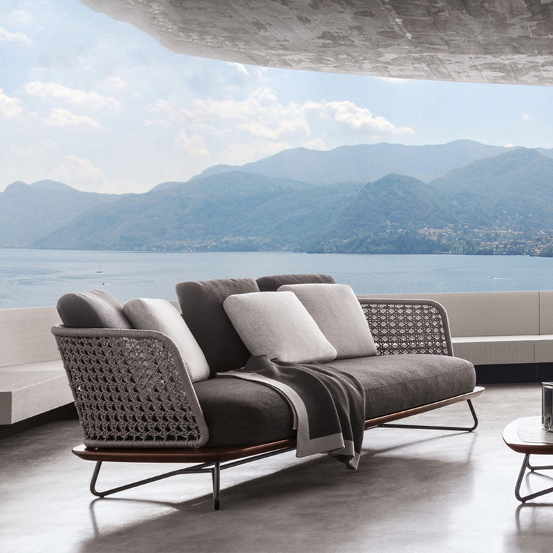 Outdoor sofa rattan courtyard balcony outdoor B&B hotel outdoor sunscreen waterproof rattan wood three-person sofa combination - Taobao
