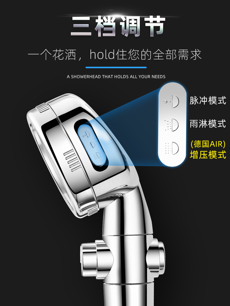De Three Gear Booster Shower Head Dthree Gear Booster Shower Blast Resistant Hose D Three Tranches Booster Shower Explosion Hose Anti-Nail Wall Seat D Three-Gear Booster Shower Head Free Of Nail Wall Seat