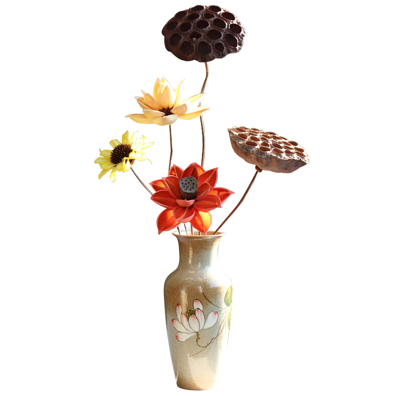 New Chinese small vase swing piece dried flower ceramic living room retro hand-painted flower arrangement desktop Tea path accessories floral decoration