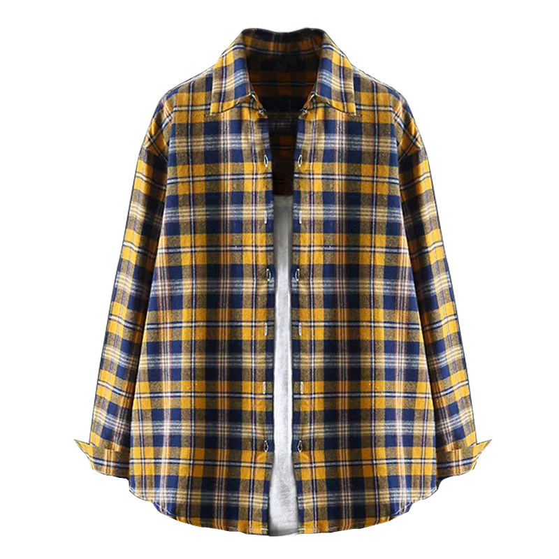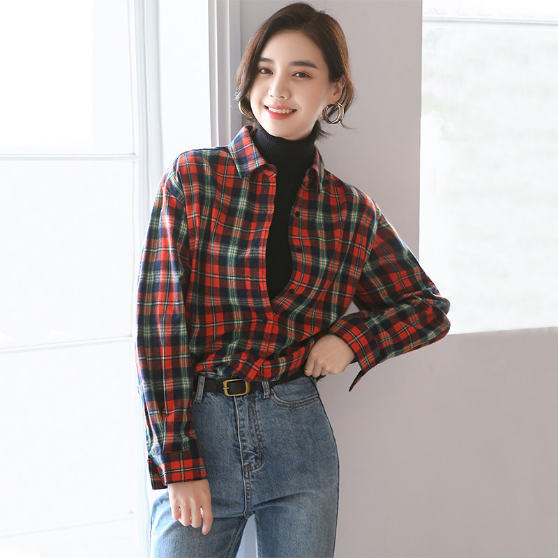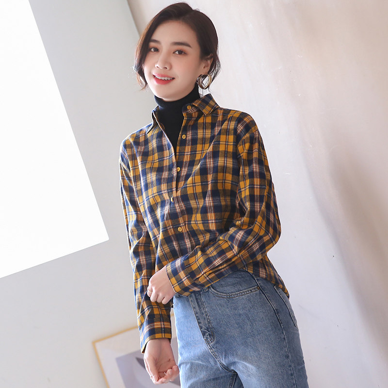 Brushed plaid shirt women's spring and autumn 2021 new retro port taste stacked design niche high-end shirt