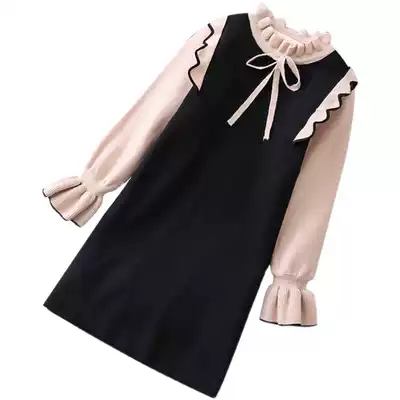 Girls dress thin sweater skirt spring and autumn girls foreign style pullover knitted long sleeve hip short skirt Korean children's clothing tide