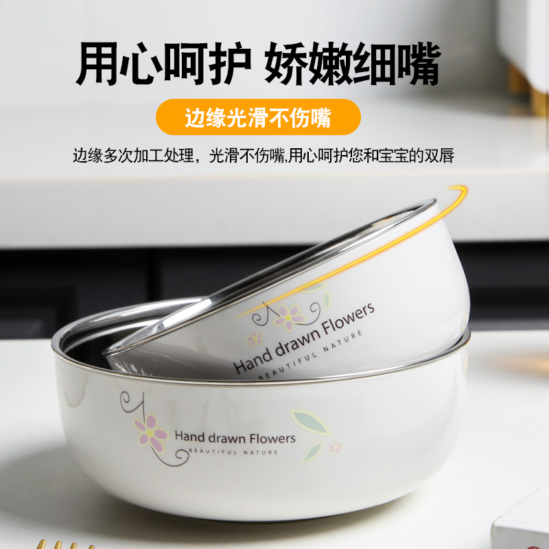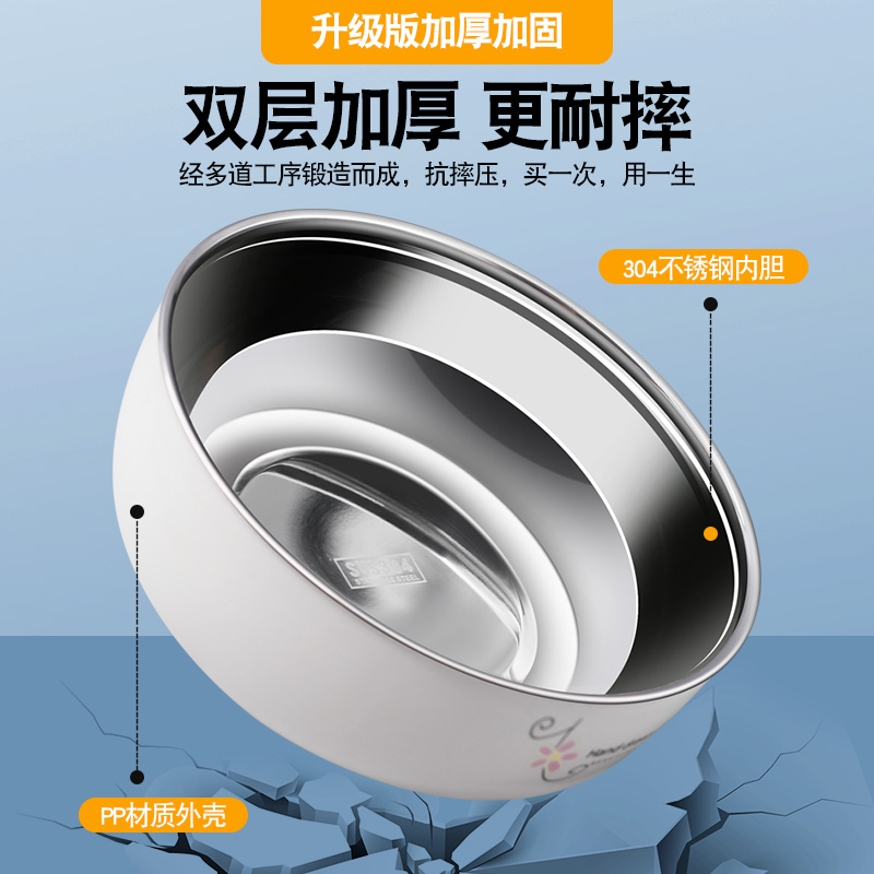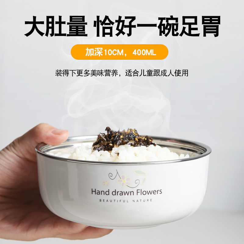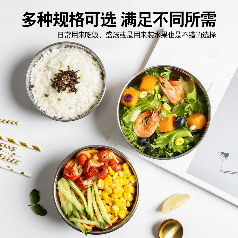 Food grade 304 stainless steel bowls Home Eating Bowls Creative Individuality Single Child Rice Bowls double anti-fall and burn