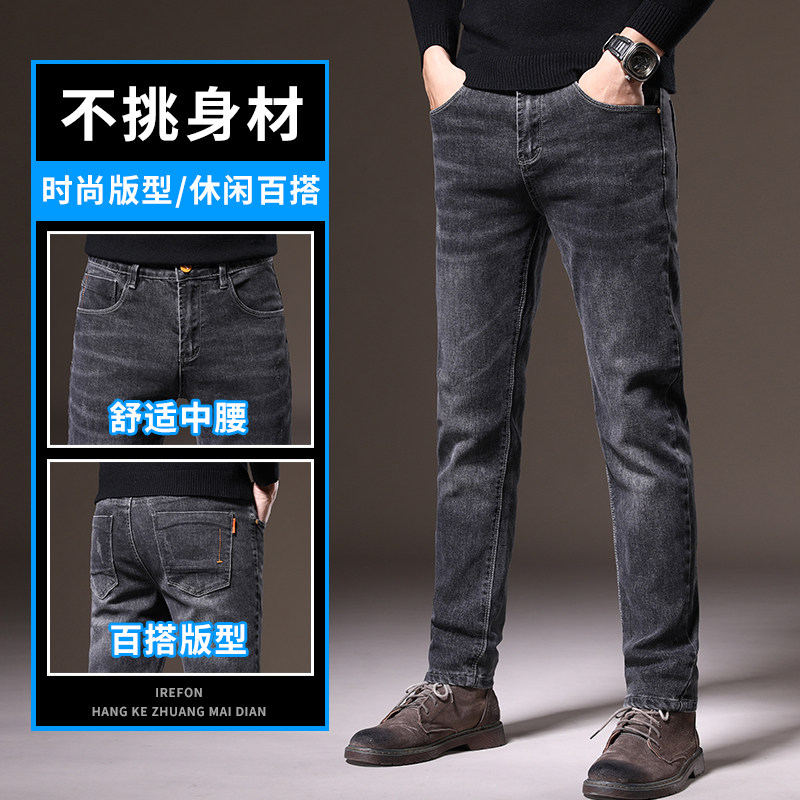 Summer thin men's pants 2021 new elastic jeans men's slim straight loose casual spring and autumn models