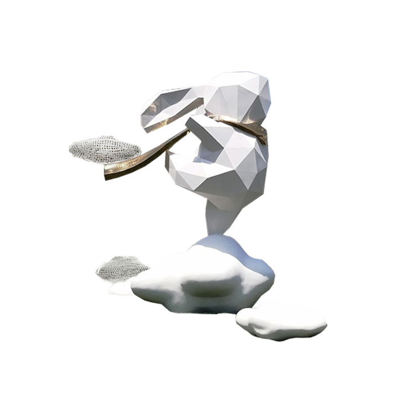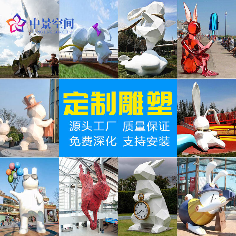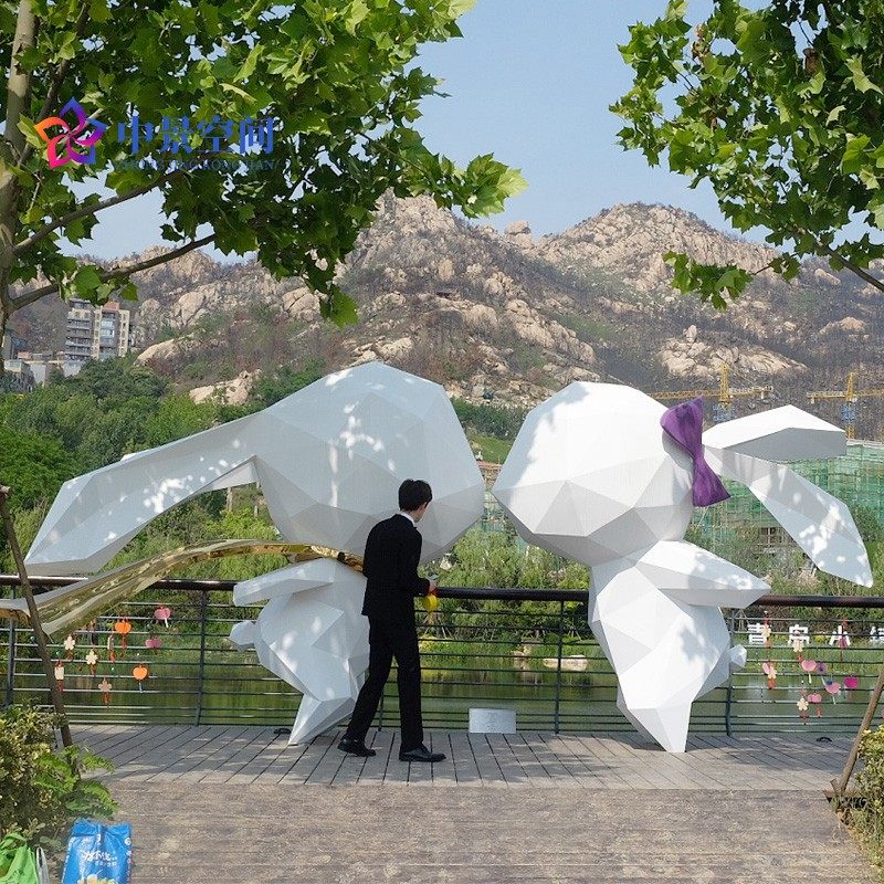 GRP Sculpture Custom Large Geometric Rabbit Stainless Steel Sculpture Mall Beauty Chen Cartoon Animal Outdoor Pendulum-Taobao