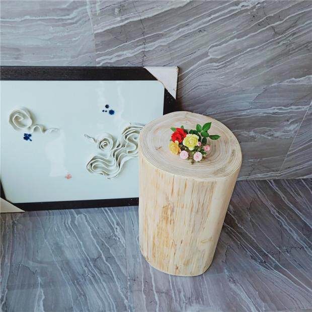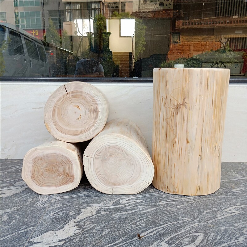 Nordic solid wood round stool clothing store wooden pier stake furnished stool root carved stool rubber