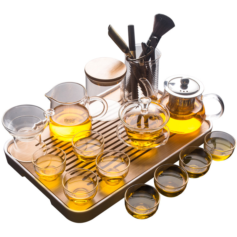Transparent Glass Tea Set Group Home Small Sets Kongfu Tea Cup Tea Tray Living-room Office Will Guest Tea Maker Cover Bowl