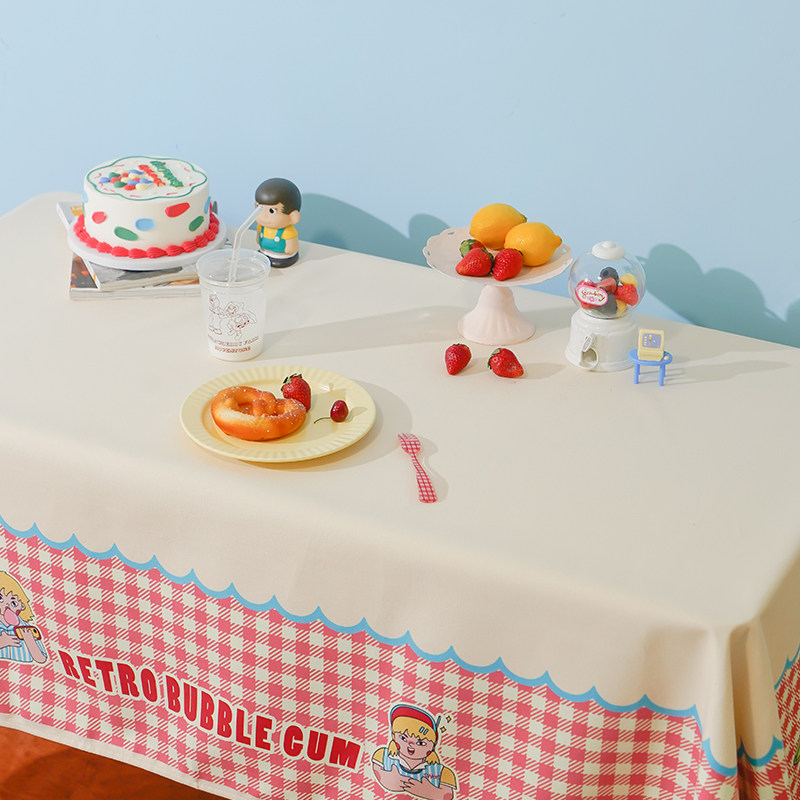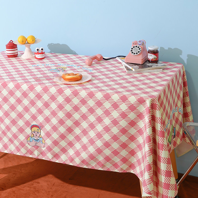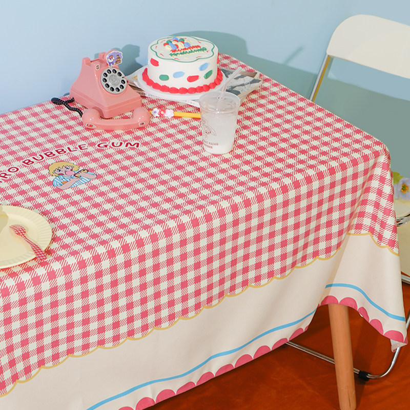 Zuo Xian Dun Road American retro lattice bubble gum blue powder student tablecloth coffee table placemat desk home decoration