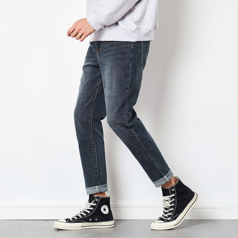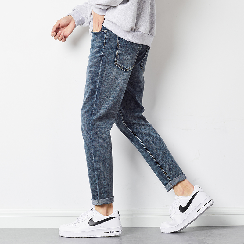 The Tang Lion 2022 spring and summer new jeans Men's body small feet Tide Card elastic tight fit Long pants Korean version Trend