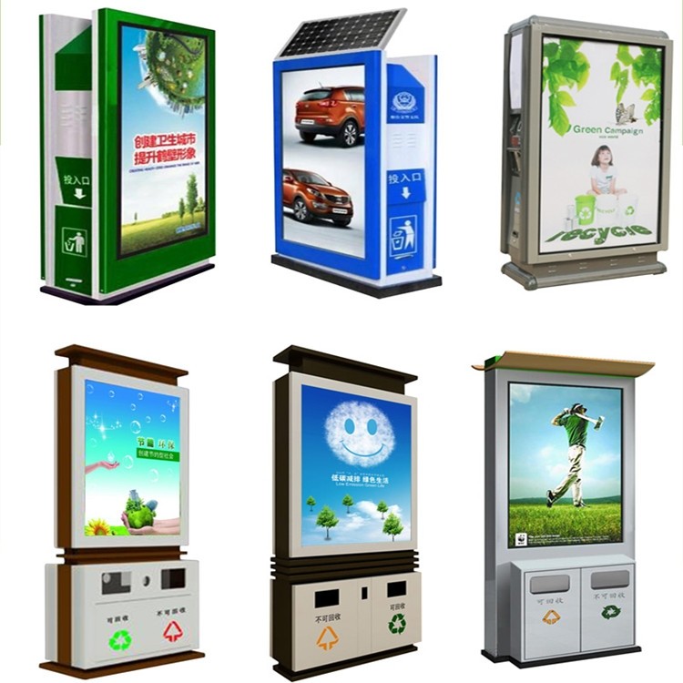 Custom solar advertising dustbin bucket brand three categories peel outdoor rolling system light box Antique promotional bar