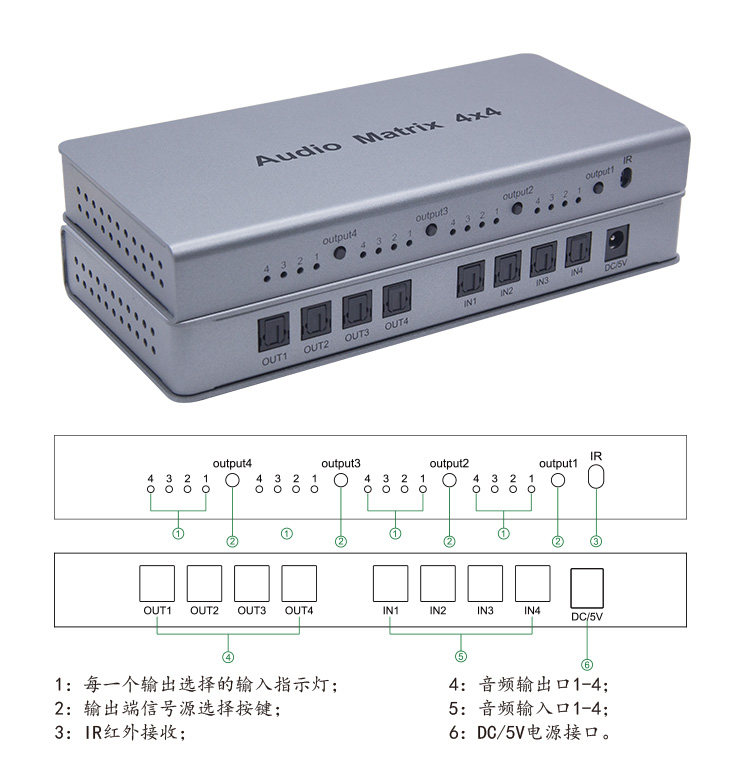 5 1 Original code DTS dubi AC3 digital SPDIF optical fiber audio distributor switcher matrix 4 in 4 out remote control