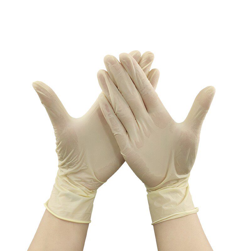 Latex beige powder-free purification smooth surface 100 PVC transparent gloves 100 latex beige powder-free purification hemp surface 100
