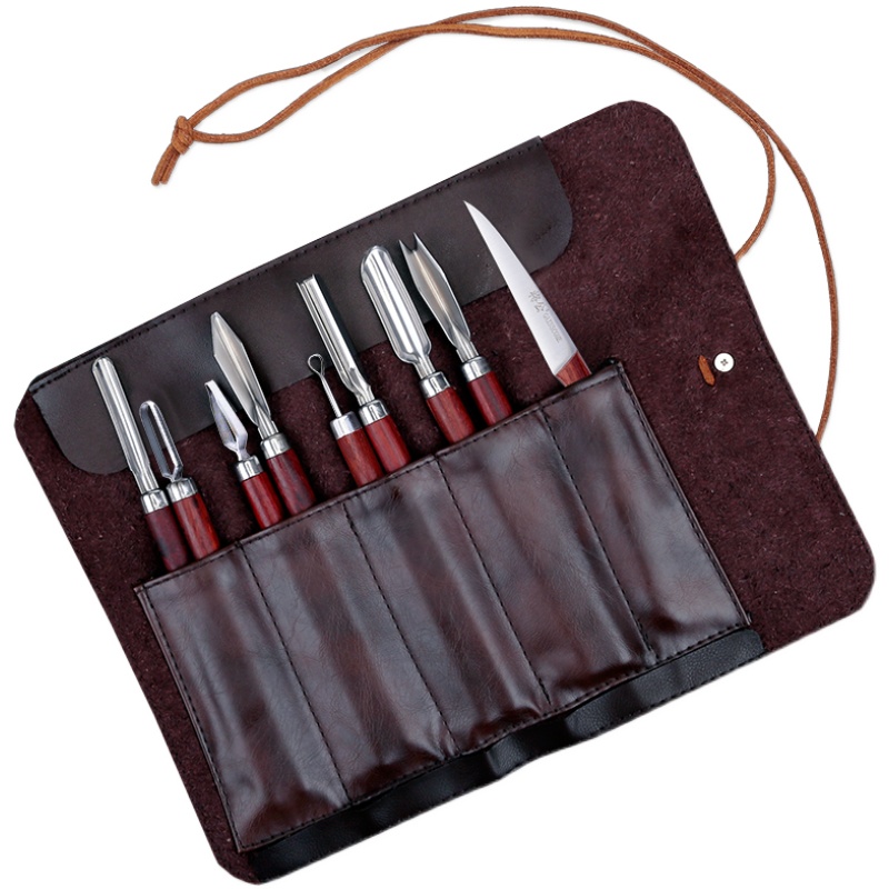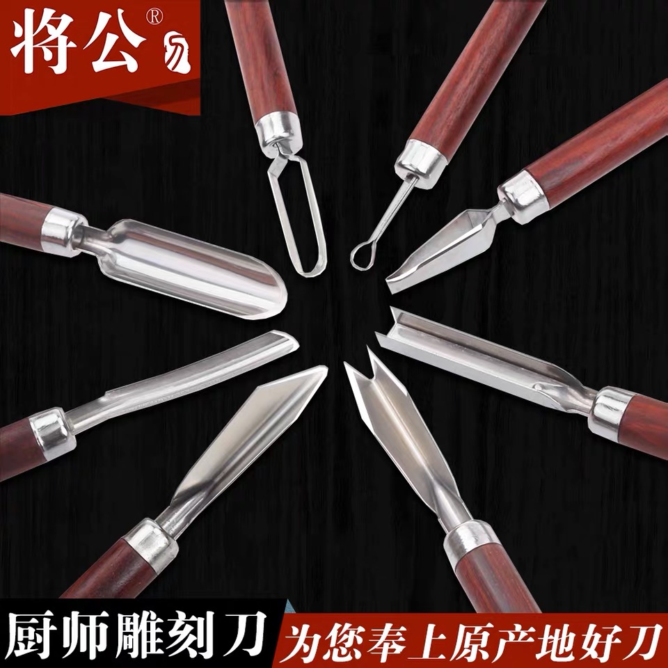 Take the public full set of chefs engraving knife main knife suit stainless steel U type V poke knife lacarving knife fruit carving knife leather sleeve-Taobao