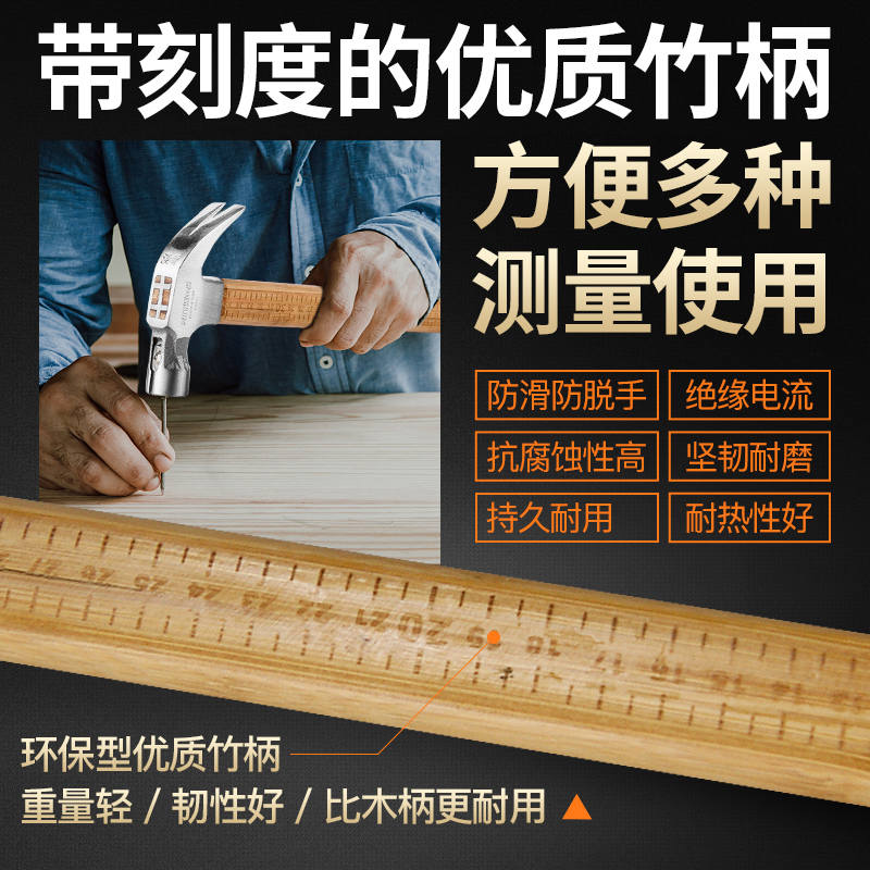 Anzac Croissant Hammer Hammer Nail Hammer Woodworking Hammer Tool Pure Steel Hammer Bamboo Handle Household Hammer Integrated Aoxin