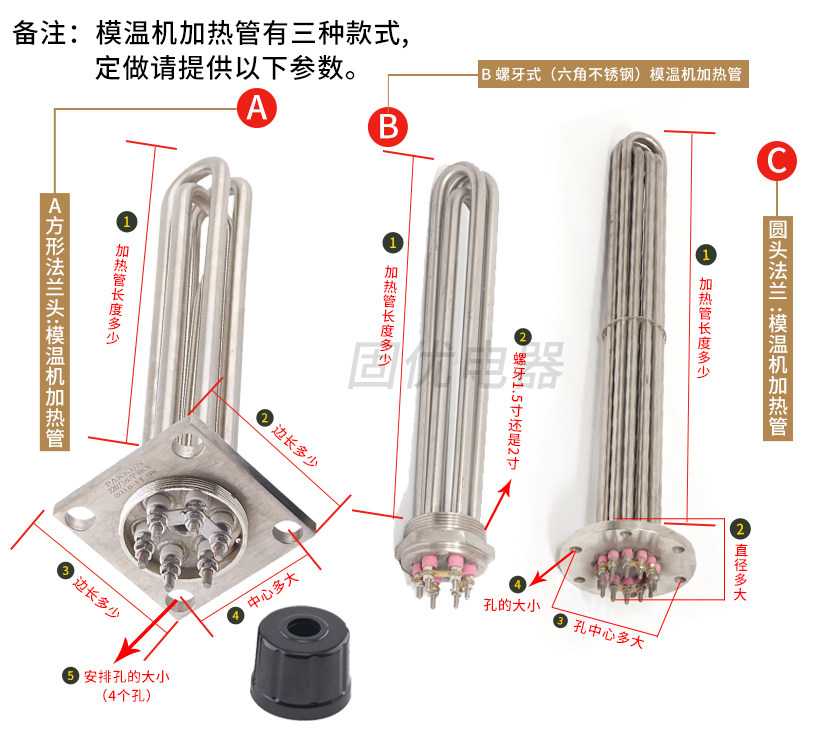Flange-type die-temperature machine heating tube electric heating tube water tank boiler Kettle Boiler steam scalding machine heating tube 6KW9KW12KW