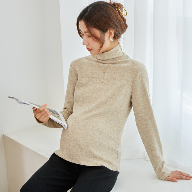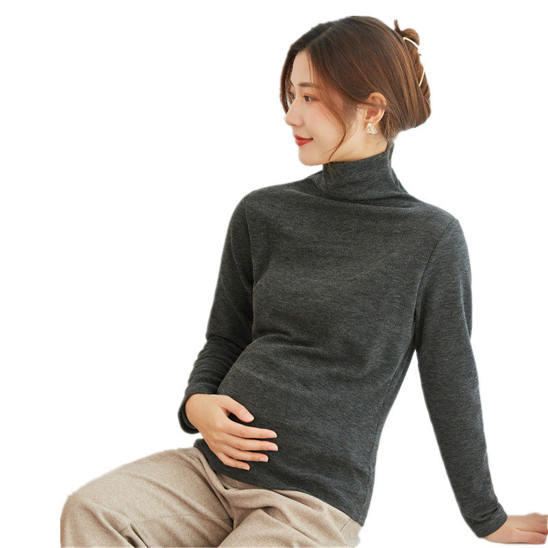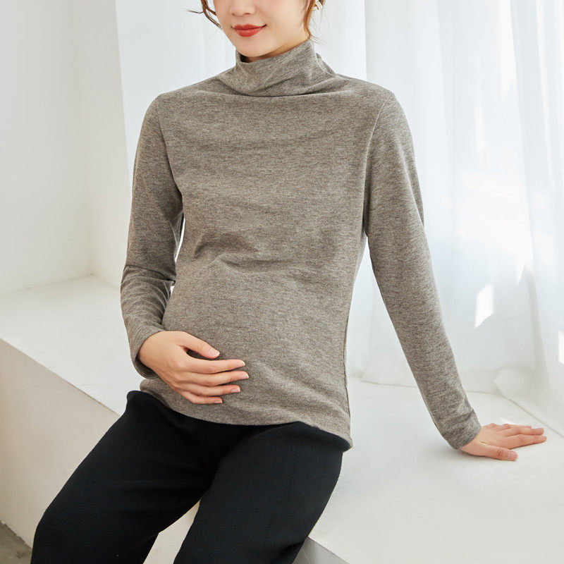 Pregnant woman hit undershirt autumn in winter with female double face grinding wool cashmere high collar blouses fashion pile collar warm clothes-Taobao