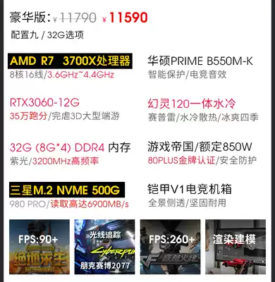 AMD sharp Dragon R7 3700xRTX3060 12G high-end eating chicken e-sports rendering computer host diy desktop