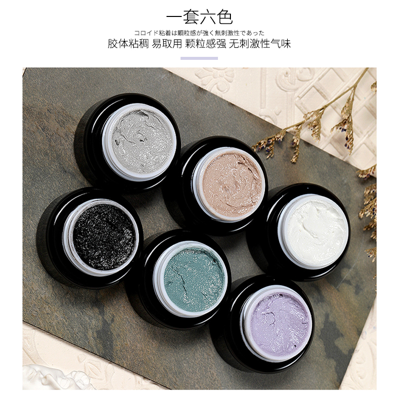 Gypsum glue 1# Mousse white plaster glue 2# Lavender plaster glue 3# Honey cheese plaster glue 4# Misty rain plaster glue 5# Cement grey plaster glue 6# Carbon black #1 Gypsum white