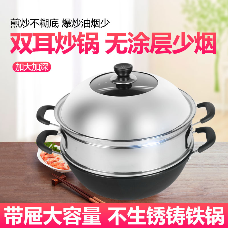 Iron pot old-fashioned iron pot induction cooker frying pan cooking one non-stick pot household gas stove suitable
