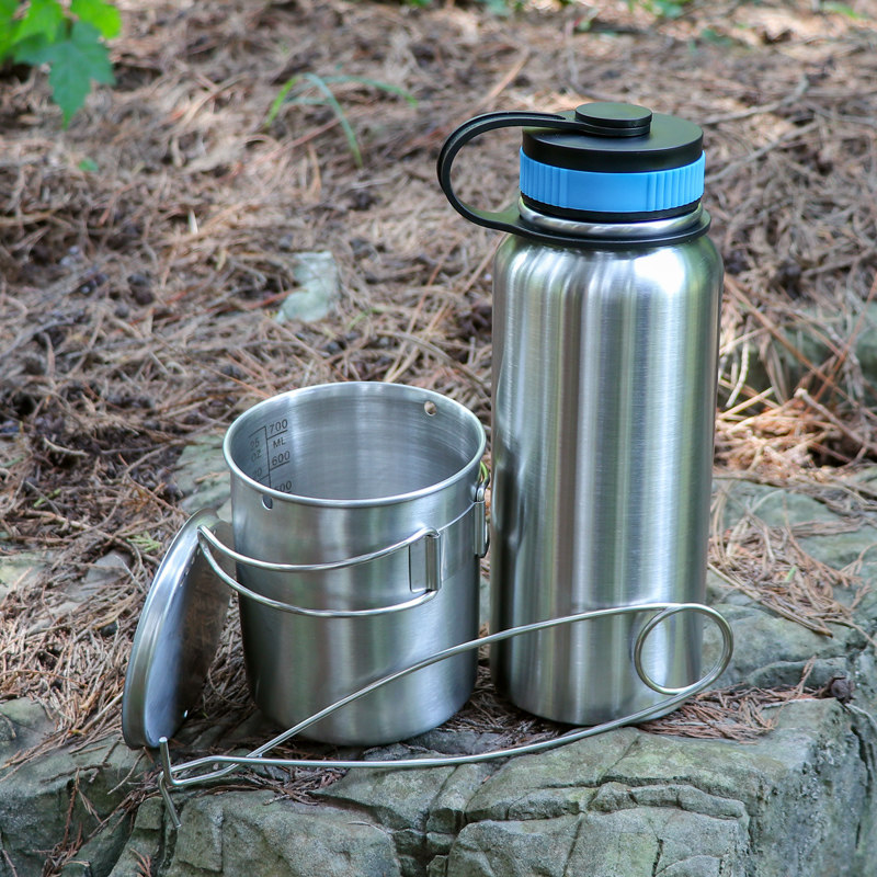 Savage bushcraft outdoor camping 3-piece stainless steel hanging pot pot folding portable kettle water cup set