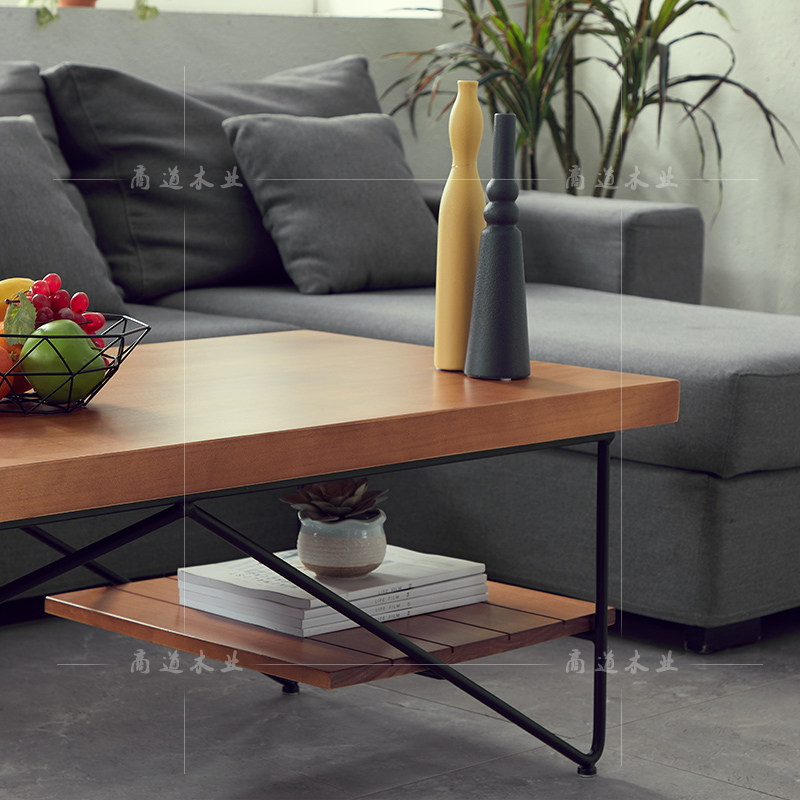 Solid wood coffee table small apartment type low table dining table dual-purpose corner table living room tea rack wrought iron office tea room tea table
