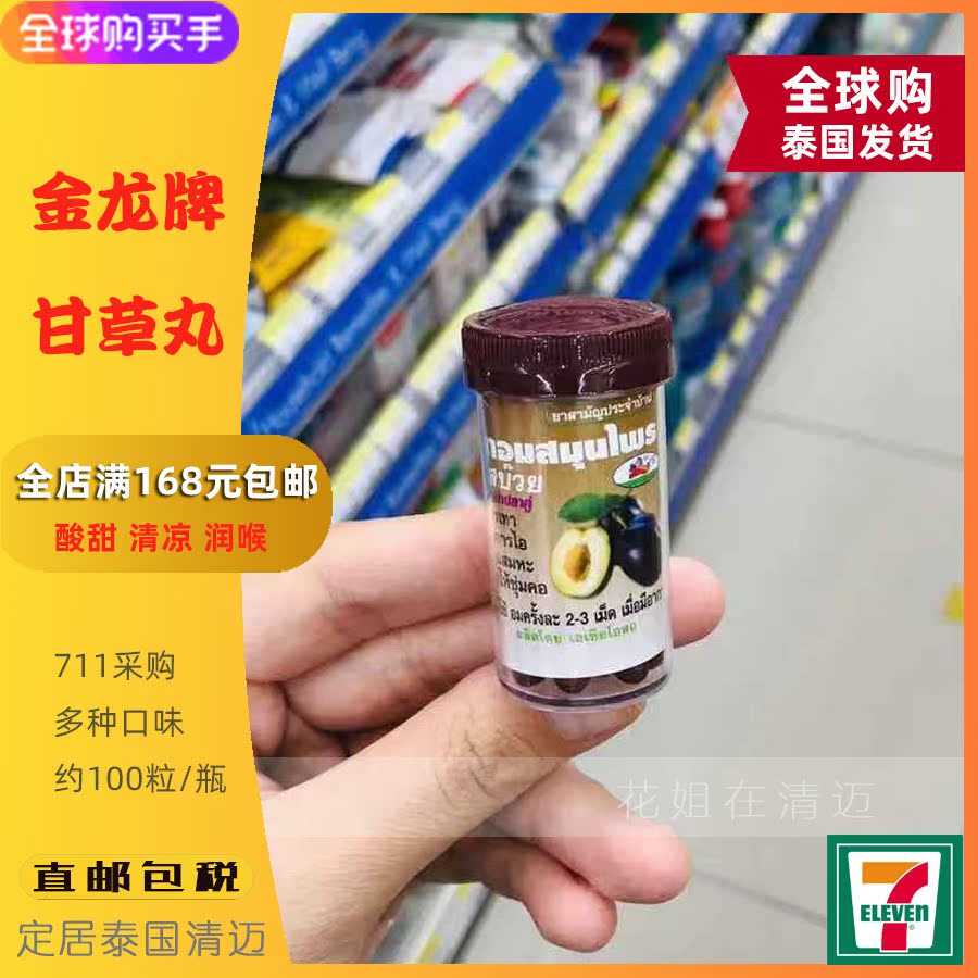 Thailand's new 711 imported snack gold dragon card Weiantang liquorice pellet moisturizing throat sugar bottled 100 straight postal mail