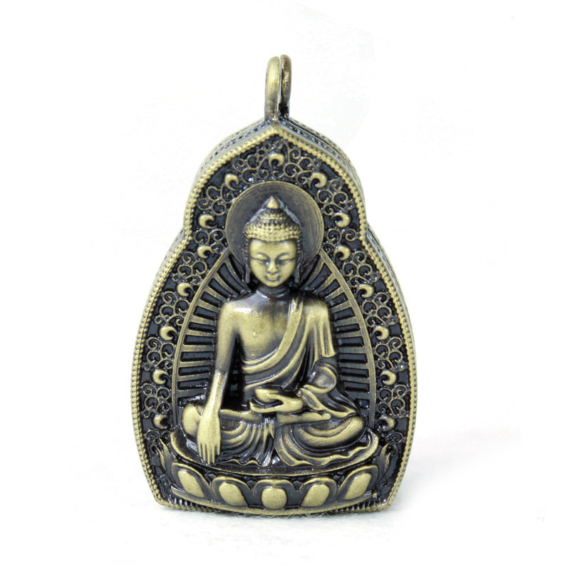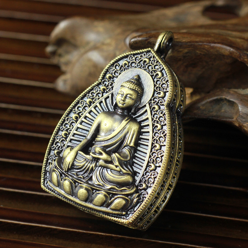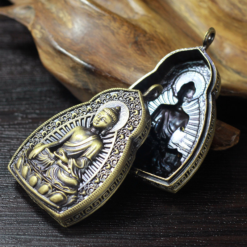 Home Supplies Sakyamuni Buddha Gou Box Pendant Pendant Pure Bronze Necklace can be loaded with small Buddhist niche Bronze color