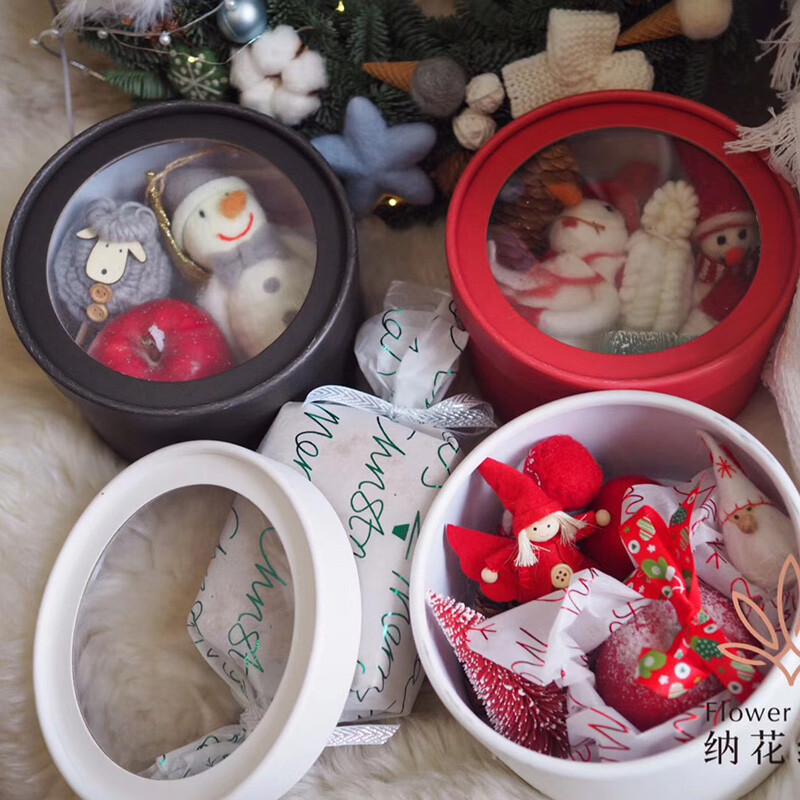 Christmas Box Round Open Window Cover Gift Box Transparent Mini Gift Box Christmas Apple Box Flowers Packaging Box Companion Gift Box
