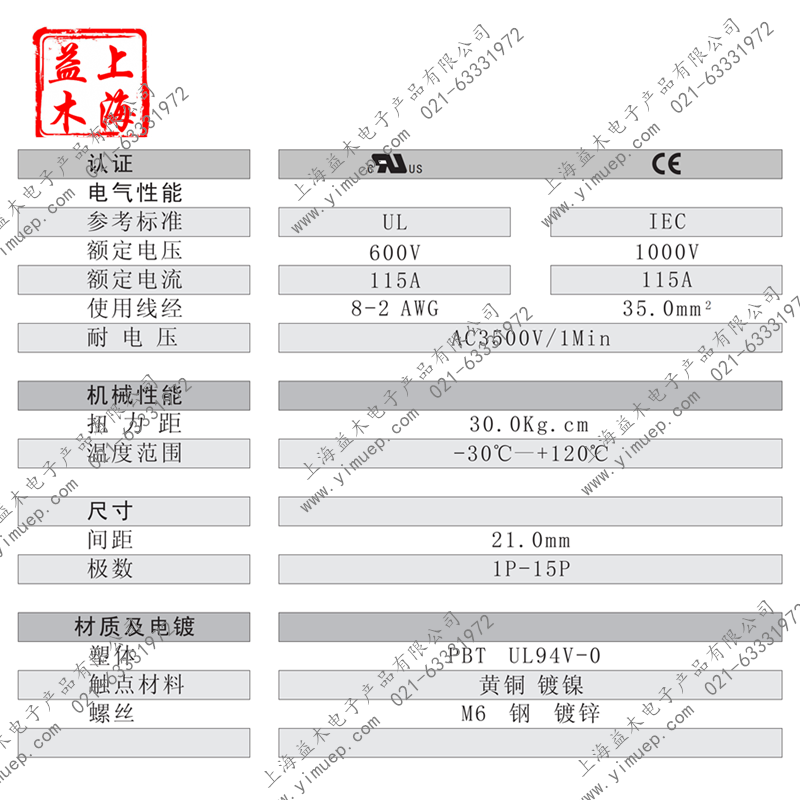 keefa corfa fence style 21 0mm large current terminal KF57S-1P2P3P4P6P8P9P15 with lid 115A
