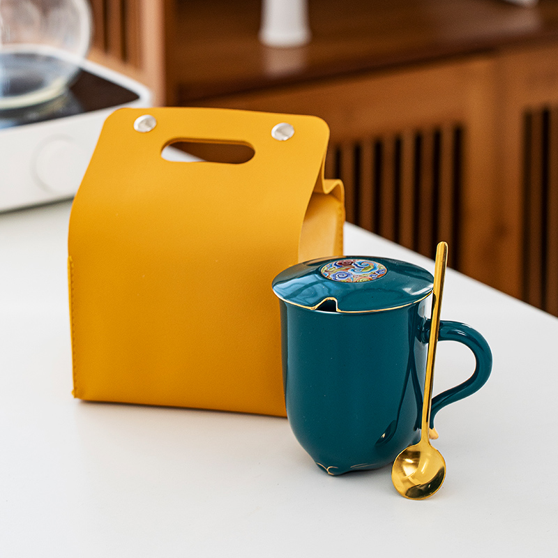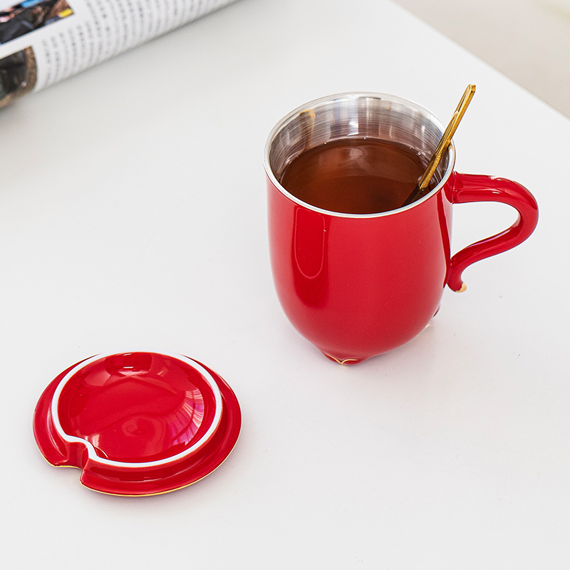 999 sterling silver tea cup ceramic liner gilt silver water cup storage bag office cup coffee cup mug with lid with spoon