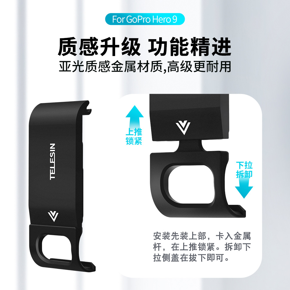 For Gopro10 9 rechargeable side cover hero9 black dog 10 9 aluminum alloy quick disassembly battery protection cover