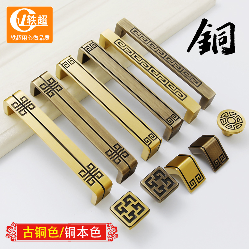 Chinese pure copper handle New Chinese cabinet door wardrobe copper handle Antique copper color all copper vintage furniture cabinet handle