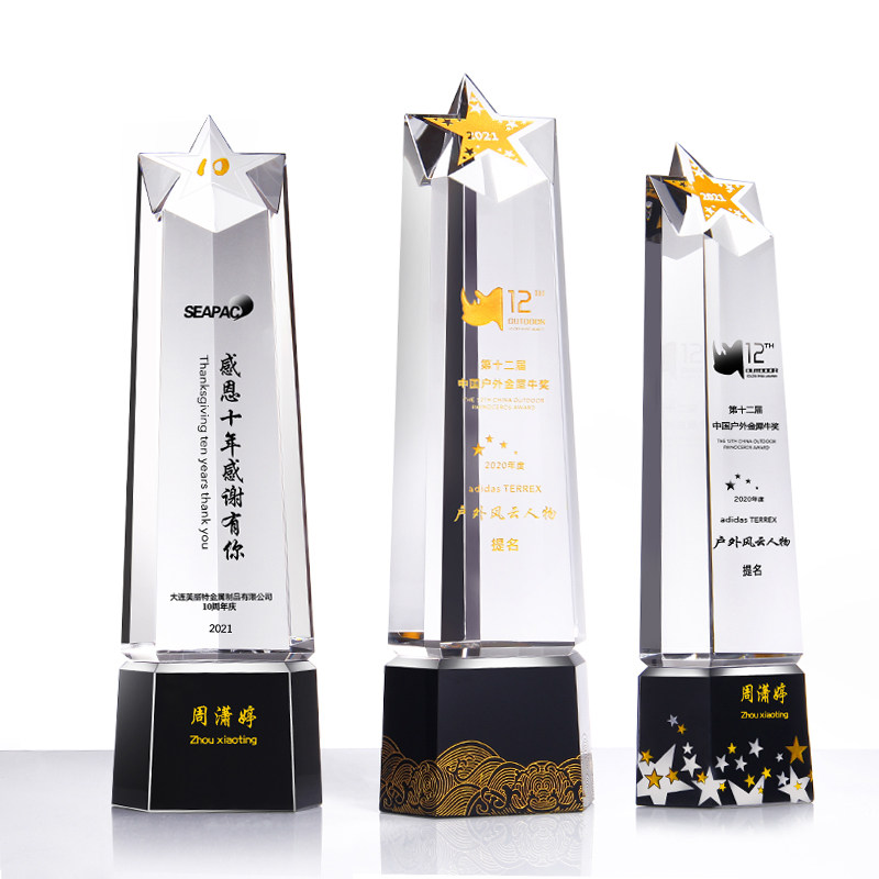 Five-pointed star trophy crystal set to do the star of excellence of the new outstanding staff award annual meeting medal creative engraving
