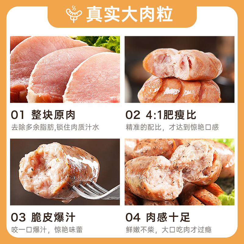 Shuanghui starchless grilled sausage authentic sausage 440g volcanic stone meat sausage hot dog sausage sausage black pepper crispy sausage