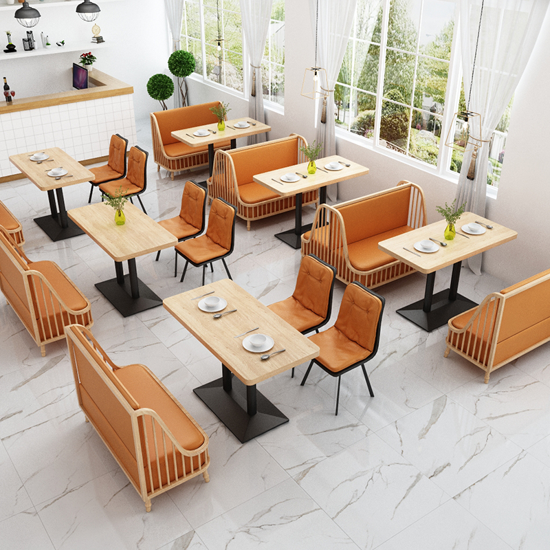 Solid wood milk tea shop table and chairs dessert shop barbecue west dining room card seat cafe bar sofa commercial stool combination