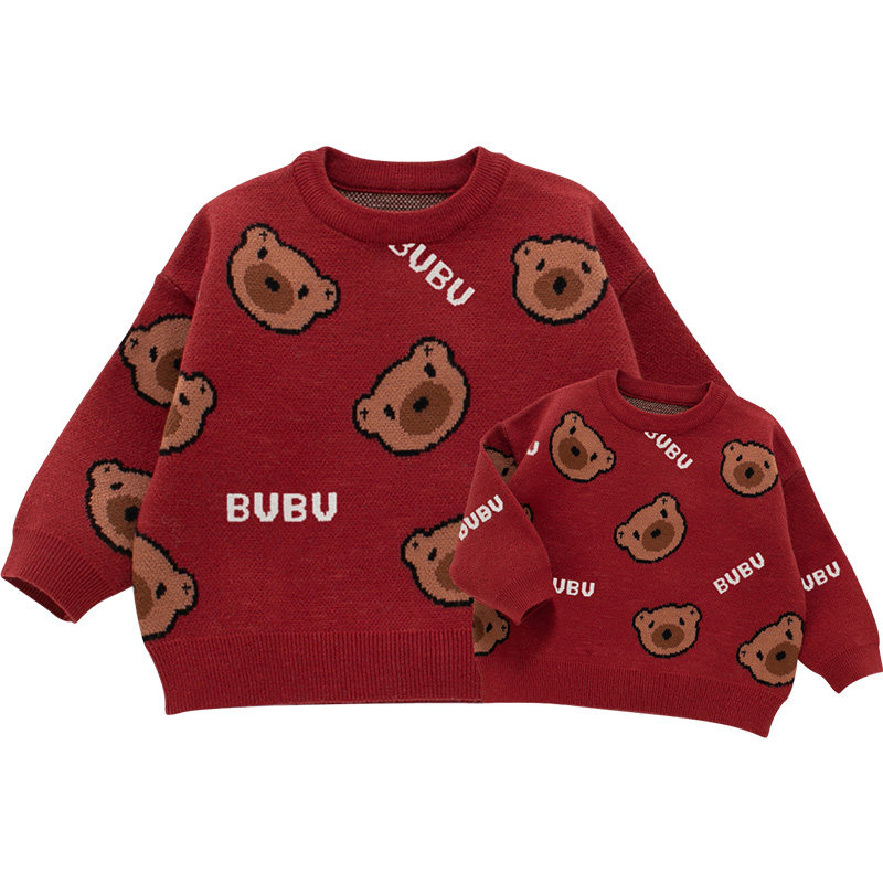 New Year's parent-child dress foreign air knitwear mother and daughter wear autumn and winter new red sweater family of three parent-child mother and child clothing