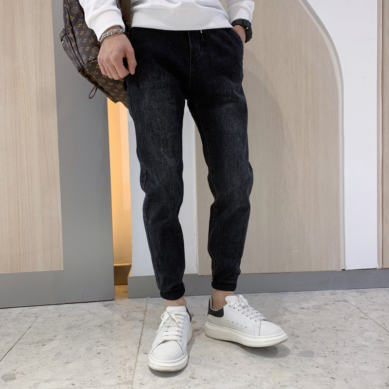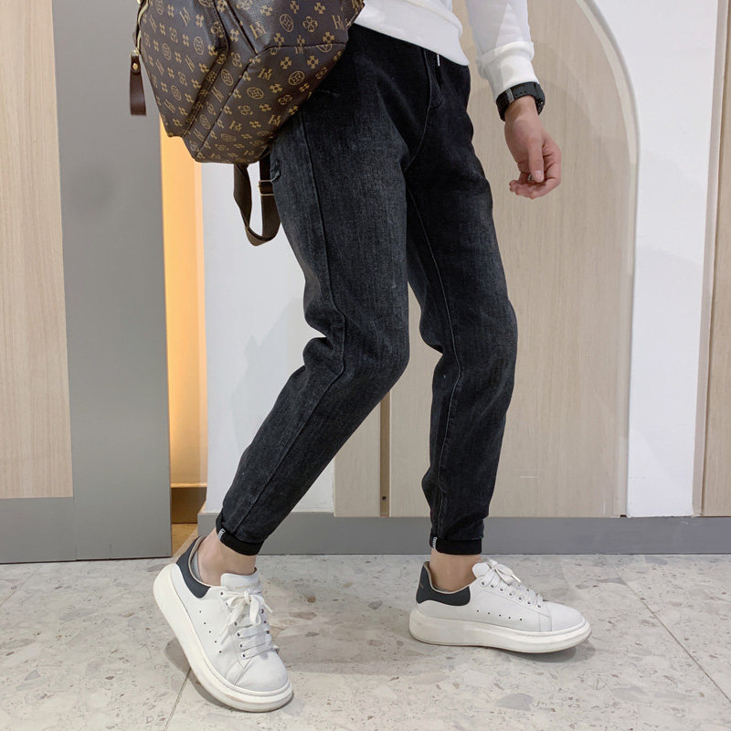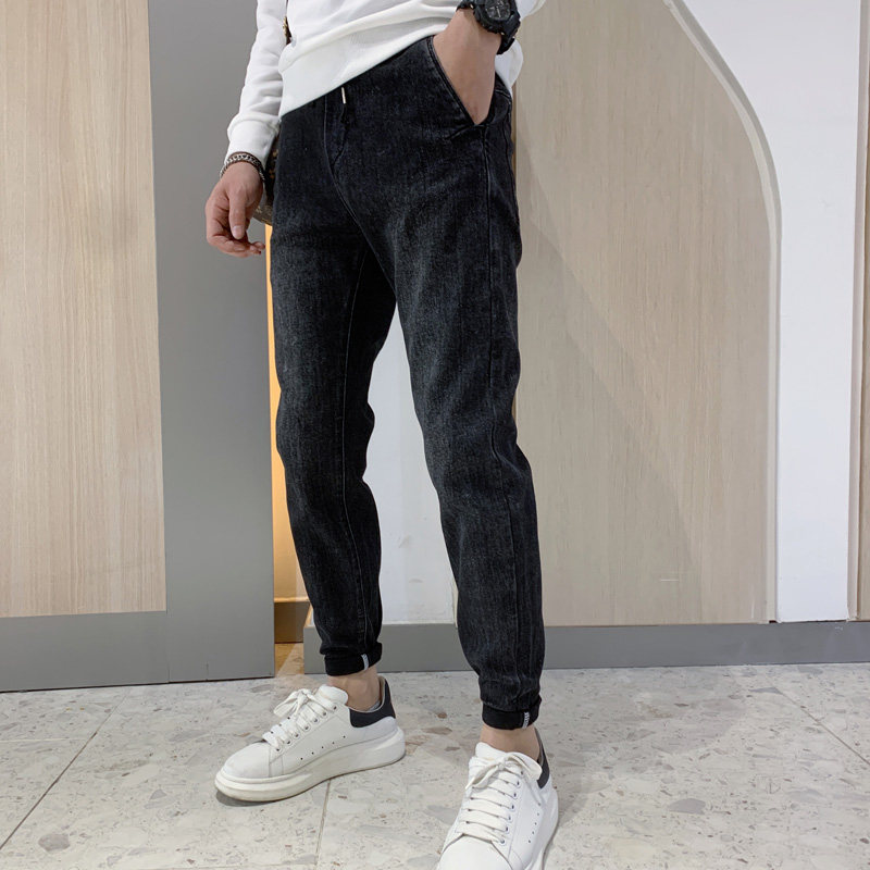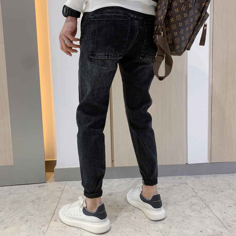 Black jeans men's trendy brand trend handsome wild men's pants autumn and winter 2020 new Korean version of small feet pants
