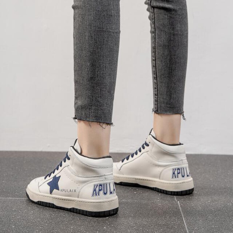 Warm star white shoes 2021 autumn new high-top casual shoes trendy all-match leather hip-hop sneakers women