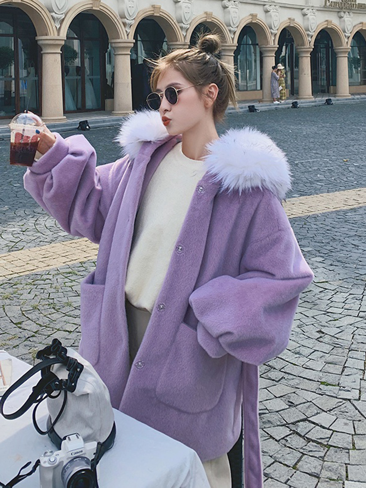 Lecea Alice Water Mink Suede Jacket Woman 2022 Winter's new big fur collar Romantic Purple Closets