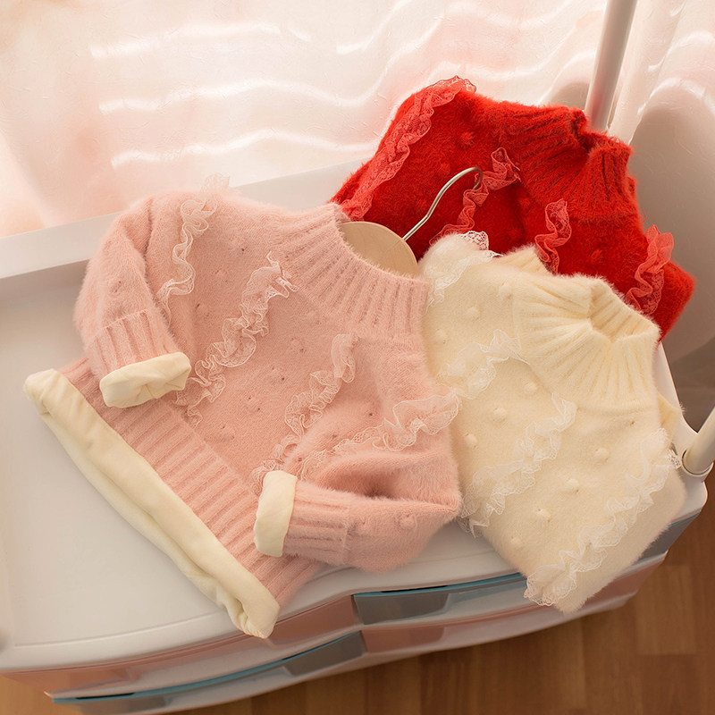 Baby girl plus velvet thickened mink velvet sweater Western style baby children's autumn and winter clothes girls inner sweater sweater