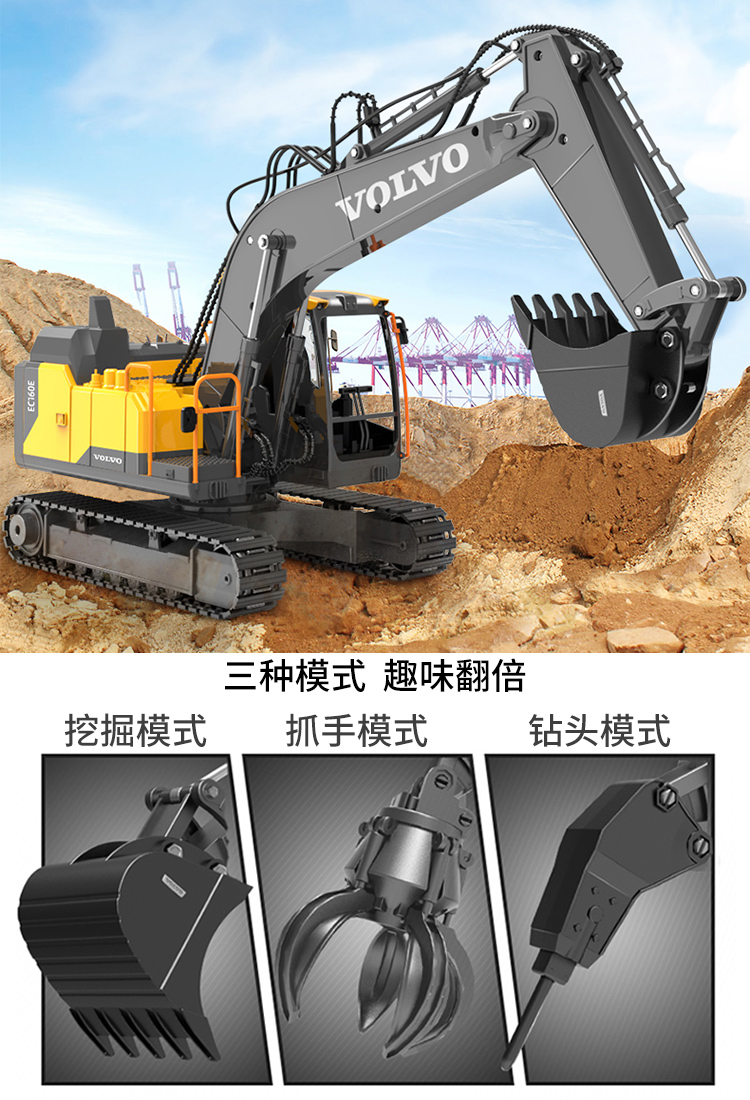 Genuine VOLVO alloy excavator 17 channel VOLVO excavator large remote control dump truck VOLVO excavator large remote control fire truck VOLVO excavator