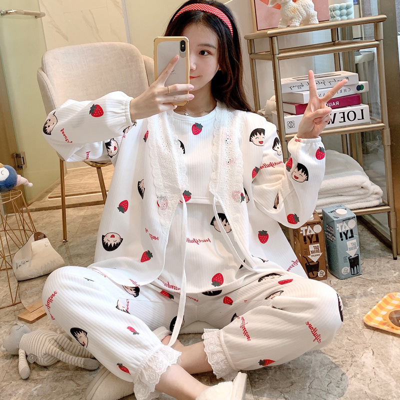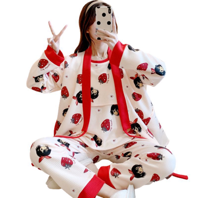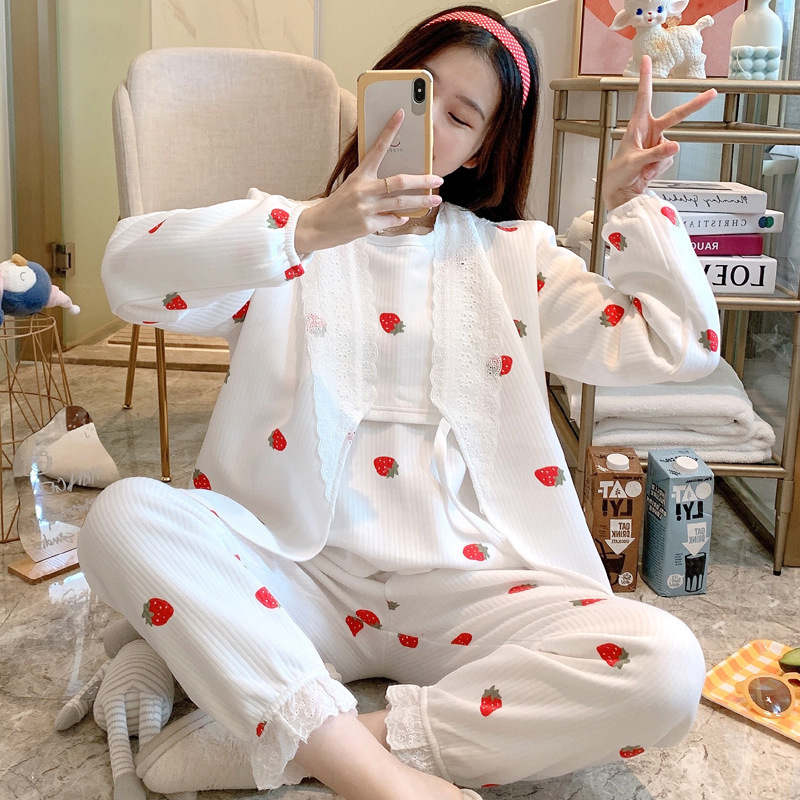 Autumn Winter Air Cotton Moon Subsuit Postpartum Breastfeeding Pajamas Mezzanine Cotton Three Suits Pregnant Woman Maternity Home Conserved Spring Autumn