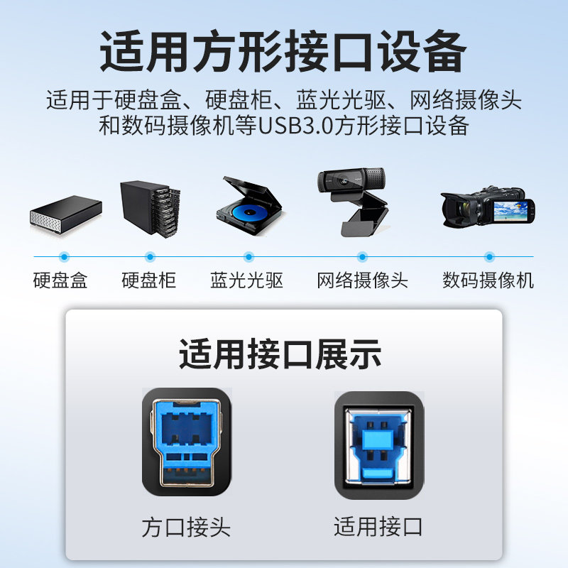 USB30 high-speed square port Tinned copper core Support hard disk box